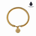 Espiritualidade e estilo se unem no Bracelete São Bento, o acessório perfeito para quem busca proteção com um toque de elegância clássica. Esta peça apresenta um design rígido com textura torcida, que confere um ar atemporal e robusto à joia.
