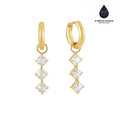 Elegante e com brilho. O Brinco Trio Cristal combina a praticidade da argola clássica com o luxo de três cristais pendentes em lapidação quadrada, que capturam a luz a cada movimento. É a peça perfeita para quem deseja um acessório que une delicadeza e uma presença marcante de forma equilibrada.