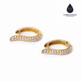 Moderno e fluido. O Brinco Slim reinventa o clássico formato de argola com um design ondulado e orgânico que abraça a orelha com elegância. Cravejado com cristais em sua face frontal, captura a luz a cada movimento, garantindo um brilho sofisticado e contínuo.