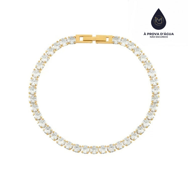 Banhada em ouro 18k, essa pulseira oferece brilho intenso e durabilidade, além de ser à prova d’água – não escurece. Seu fecho seguro garante conforto e praticidade para o uso diário ou ocasiões especiais.