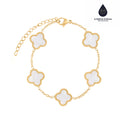 Delicada, elegante e atemporal. A Pulseira de Trevo Branco é a escolha perfeita para quem ama joias sofisticadas que iluminam o look com suavidade e charme. Seus trevos em tom branco trazem leveza e significado, simbolizando pureza, equilíbrio e boas energias.